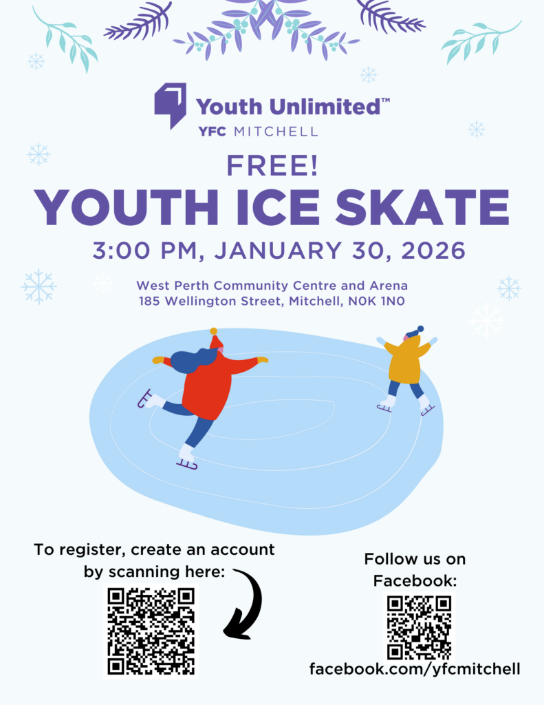 Join us for a Free Youth Skate on the PA Day, on January 30, 2026. Skate open to youth in Grade 6 to Grade 12.