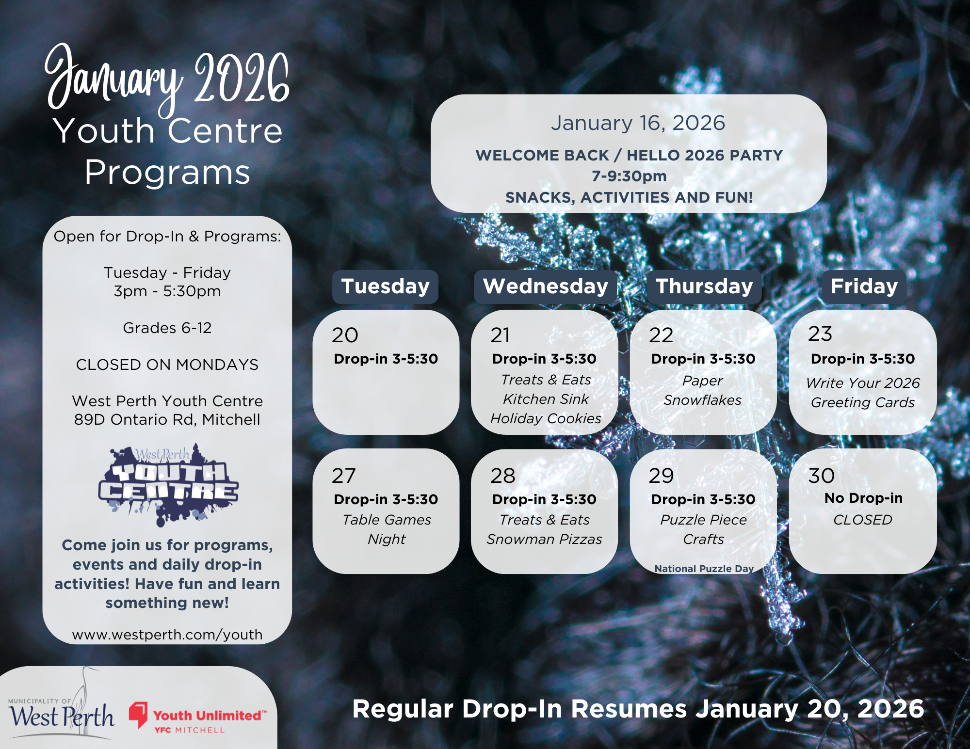 Jan. 2026 Youth Centre Calendar