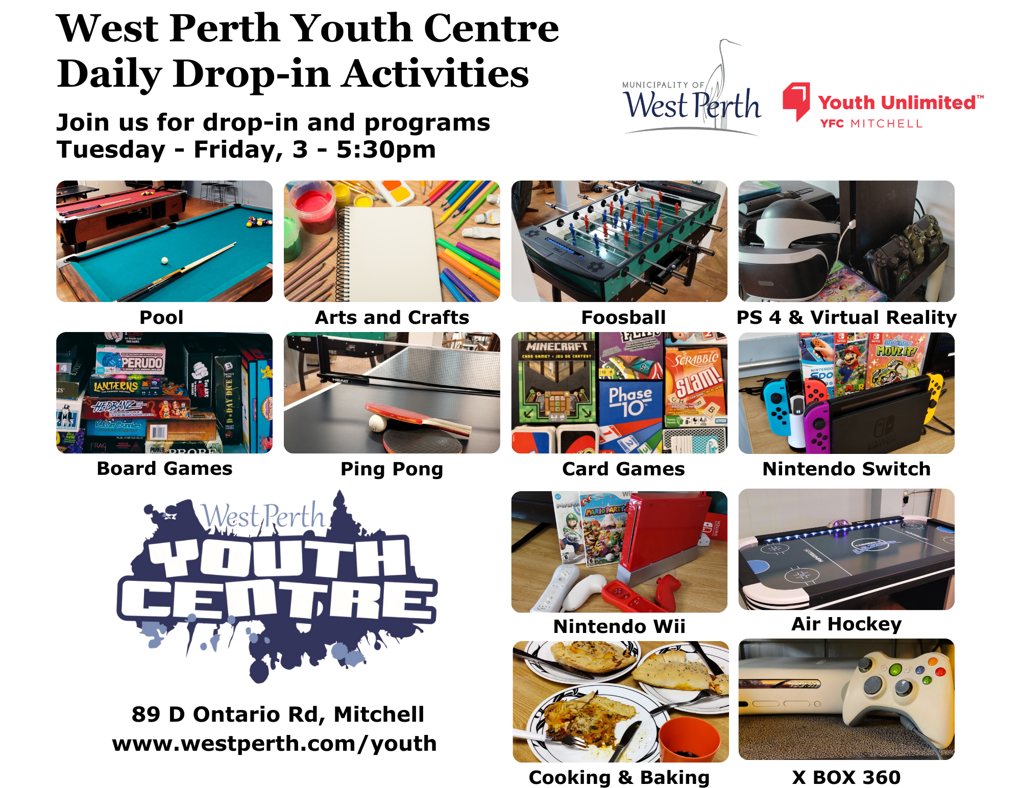 Youth Unlimited YFC Mitchell provides volunteer support to the Municipality of West Perth to plan, organize and run programs at the West Perth Youth Centre.